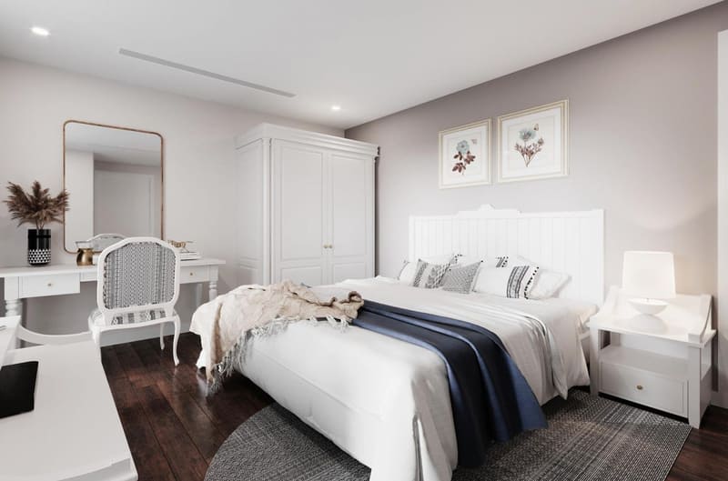 Đối với các căn hộ chung cư có diện tích khoảng từ 45 đến 70m2, sử dụng gam màu trắng và khoảng màu giữa các khối không chênh lệch nhau quá nhiều sẽ khiến không gian trở nên rộng rãi hơn. Còn các căn hộ 90, 100m2 trở lên thì có thể kết hợp thêm các màu nóng khác để tạo điểm nhấn cho phòng.