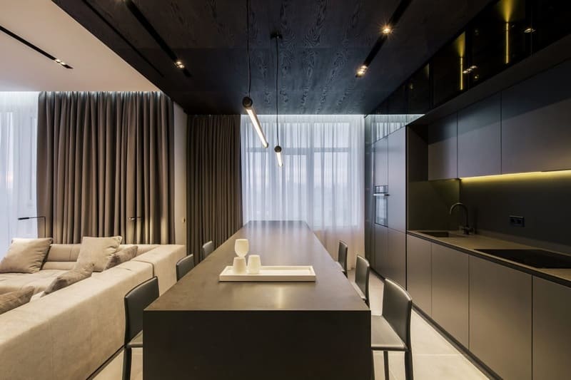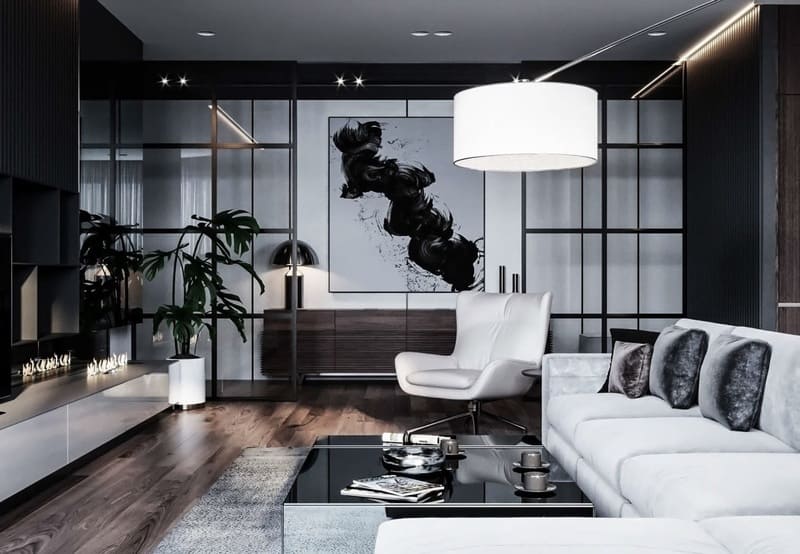 – Kết hợp kính và đèn trong nội thất được sử dụng để tạo hiệu quả tối đa về không gian.