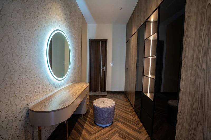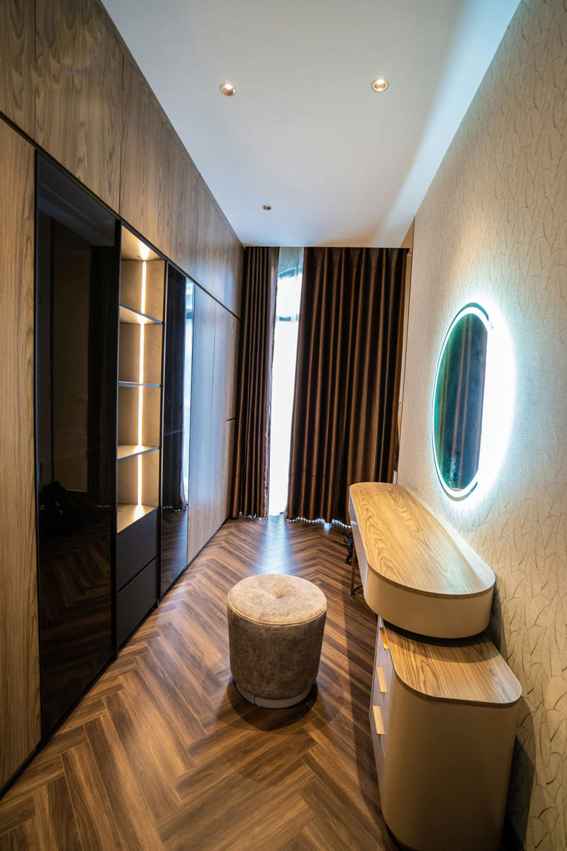 Căn hộ được thiết kế theo phong cách hiện đại, sang trọng nhưng cũng không kém phần ấm cúng nhờ sự góp mặt của chất...