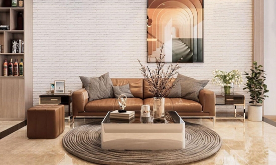 Thiết kế nội thất phòng khách cho nhà phố diện tích 80m2 không rườm rà, mang lại sự sang trọng từ những đồ phối kết xung...