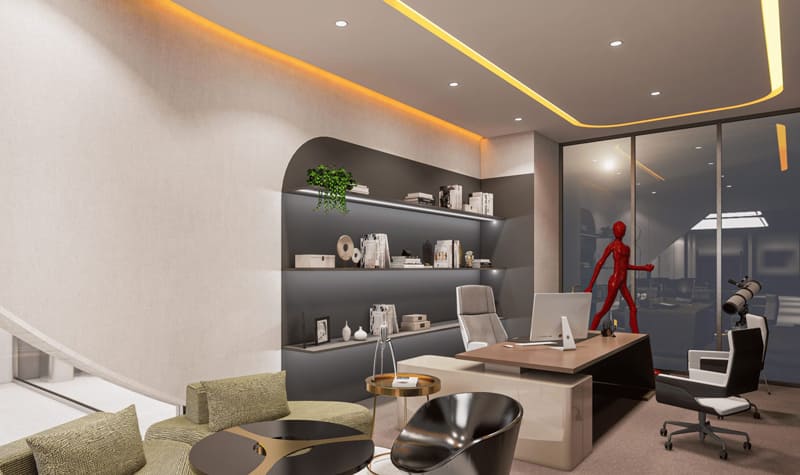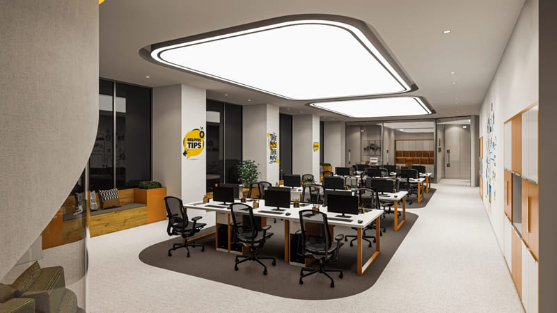 - Nội dung: Thiết kế tổng thể văn phòng theo phong cách hiện đại